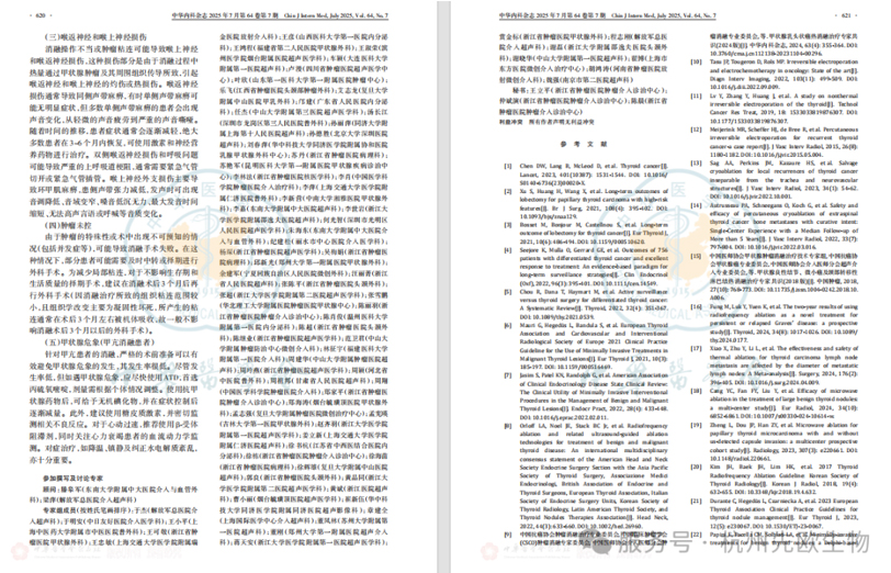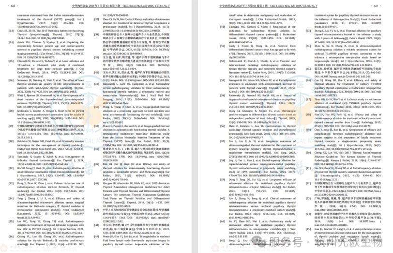 摘要:热消融作为一种有效的治疗手段,已在部分甲状腺疾病中得到应用。然而,关于其适应症,国内外仍存在较大争议。近年来,多个国际学术组织陆续发布了关于甲状腺热消融治疗的共识、声明及指南。国内方面,2018年中国医师协会介入医师分会联合其他相关学术组织发布了《甲状腺良性结节、微小癌及颈部转移性淋巴结热消融治疗专家共识(2018版)》。该共识发布后得到了行业的广泛认可,并有力地规范了我国甲状腺疾病的热消融治疗。随着循证医学证据的不断积累,为进一步严格规范热消融技术在甲状腺疾病中的应用,中国医师协会介入医师分会超声介入专业委员会联合多个相关学术组织,并组织相关专家,多次召开研讨会,经过反复修订后,最终制订了《甲状腺良性疾病、低危甲状腺癌及颈部转移性淋巴结热消融治疗多学科专家共识(2025版)》。本新版共识在继承2018版框架的基础上,优化了适应证与禁忌证,强调规范化治疗,并展望了甲状腺热消融技术未来研究与临床应用的发展方向。